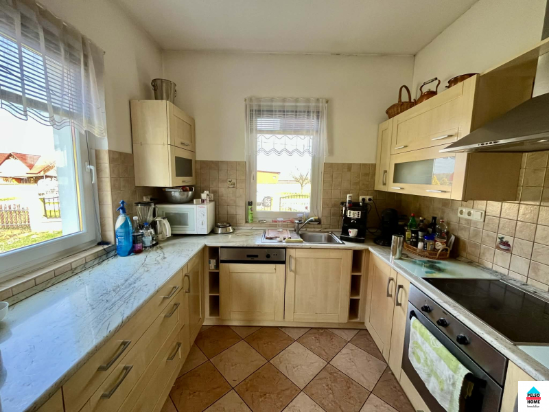 Dieses2008 erbaute Einfamilienhaus in einer ruhigen, verkehrsberuhigten Straße in Balatonszentgyörgy steht zum Verkauf. Auf 155 m² Wohnfläche bietet es drei Schlafzimmer, ein geräumiges Wohnzimmer, eine moderne Einbauküche, ein Badezimmer (mit Badewanne und Dusche), ein Gäste-WC, Abstellräume, einen Flur, eine wunderschöne Terrasse und eine beheizte Garage. Das Haus besticht durch moderne und hochwertige Materialien, eine hervorragende Wärmedämmung, hochwertige Fenster und Türen, exklusive Dachbeläge, ein Bramac-Ziegeldach, Klimaanlage, Gaszentralheizung mit Fußbodenheizung und Heizkörpern sowie einen geschmackvollen Kachelofen im Wohnzimmer. Der Dachboden kann auf Wunsch ausgebaut werden. Anschlüsse: (Wasser, Strom, Abwasser, Gas, Internet, TV etc.) Das Grundstück ist komplett eingezäunt, 1200 m² groß, sonnig und hell nach Süden ausgerichtet! Die Küste des Balaton ist nur 2,5 km entfernt (!), Restaurants und Geschäfte befinden sich in unmittelbarer Nähe. Ein hochwertiges Familienhaus ohne Kompromisse! Weitere Informationen finden Sie hier!